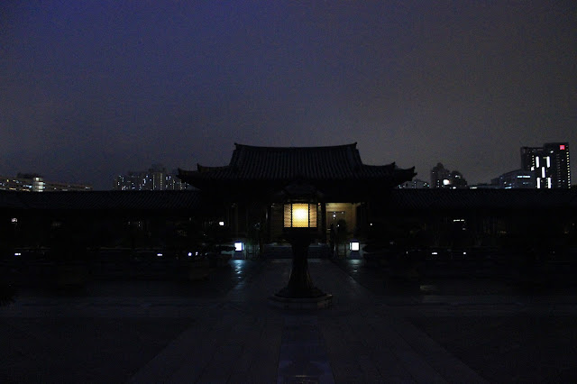 After I had a great afternoon exploring Wang Chai in Central Hong Kong I headed to the famous Nan Lian garden. I arrived after sunset so the whole park was illuminated. Being in such quite and peaceful place by myself in a big and noisy city was an unbelievable feeling. I could still see the impressive skyscrapers looming into the dark sky, surrounding the whole garden, but I didn't hear anything apart from the rush of the park's small lakes, waterfalls and streams. The whole garden including the water features, plants, bridges, temples and walkways has been designed after specific rules and methods and was built in the style of the Tang dynasty (like many other parts of Hong Kong). There were also some restrictions I had to follow. So for example one is not allowed to turn back and walk the same way.